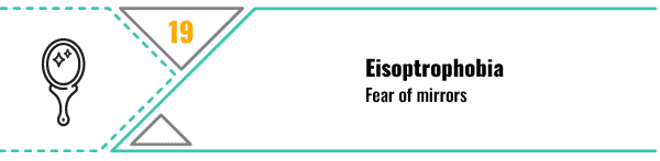 Eisoptrophobia is a fear of mirrors. This phobia is also sometimes referred to as spectrophobia or catoptrophobia. People with this fear are unable to look at themselves in a mirror. This fear may also extend to any reflective surface.