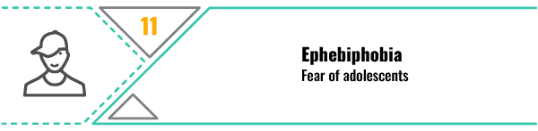 Ephebiphobia is a fear of adolescents or youth. People with ephebiphobia may perceive teenagers as out of control or dangerous and believe they are rude, unpredictable and do not follow rules. This fear is thought to develop from the negative portrayal of teenagers in the media. People with ephebiphobia are afraid of teenagers and will not want to be around them. People with this fear may avoid going to a friend’s house if they have teenagers or avoid places where teenagers tend to hang out.