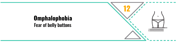 Omphalophobia is a fear of belly buttons. People with omphalophobia will avoid seeing or touching belly buttons, even their own. They might even put a bandage over their belly button to avoid looking at it. They will sometimes avoid places where belly buttons might be exposed, like the beach.
