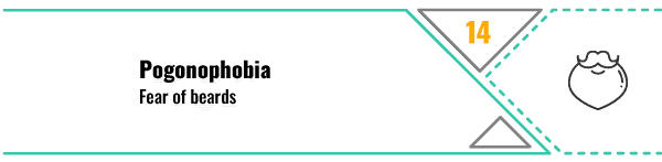 Pogonophobia is a fear of beards. This usually stems from an alarming incident with a bearded person. It could also arise from a person not liking that a beard hides someone’s face.